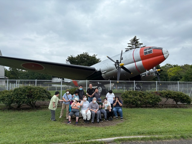 晴天とはいきませんでしたが、日本初国産旅客機の前で記念撮影をすることができました。
